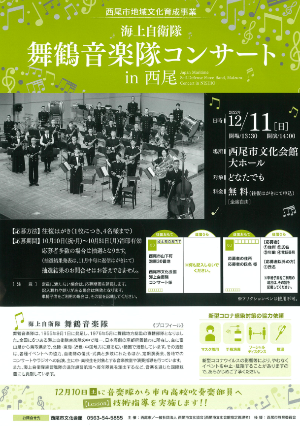 - 抽選結果発表は、11月中旬に返信はがきにて。