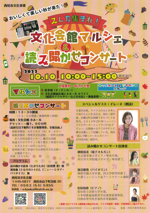 西尾市文化事業 みんな集まれ!文化会館マルシェ&読み聞かせコンサート