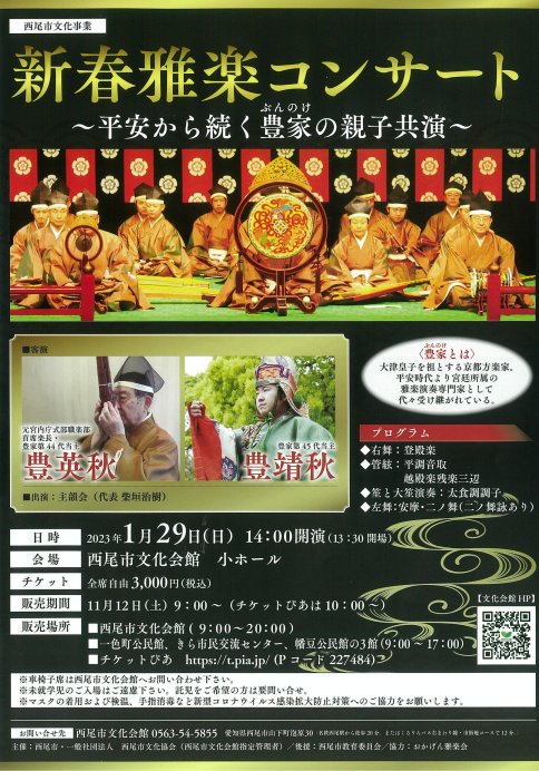 - ※車椅子席は西尾市文化会館へお問い合わせ下さい。