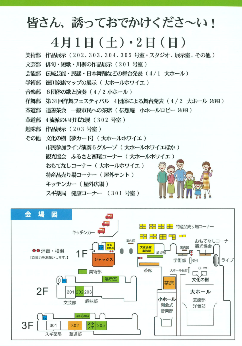 - 4月1日(土)9時~17時、2日(日)9時~16時 会場:大ホール1階ロビー