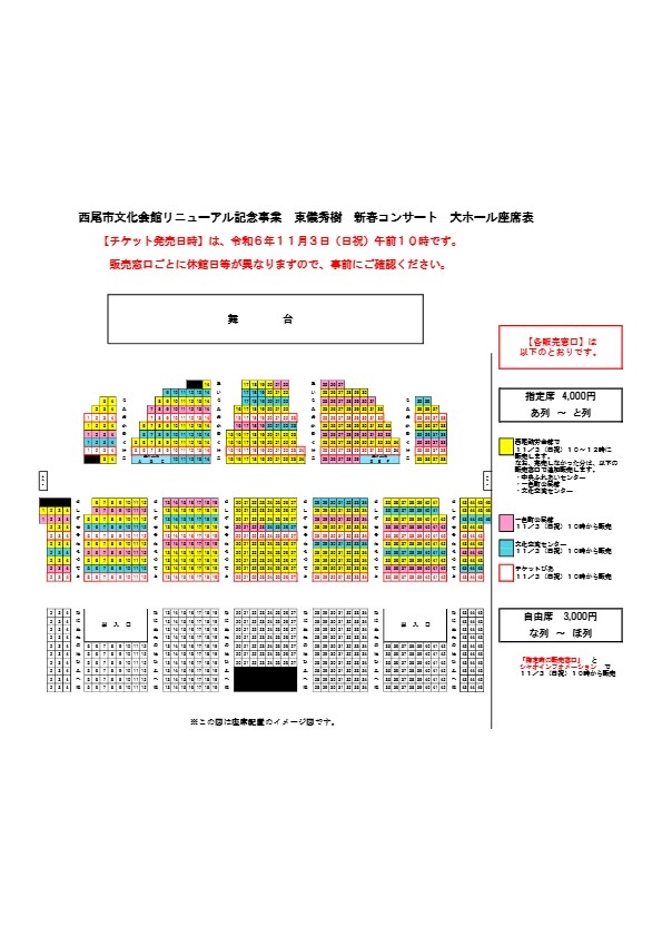 - ※車椅子席をご希望の方は、西尾市文化交流センターへお問い合わせください。