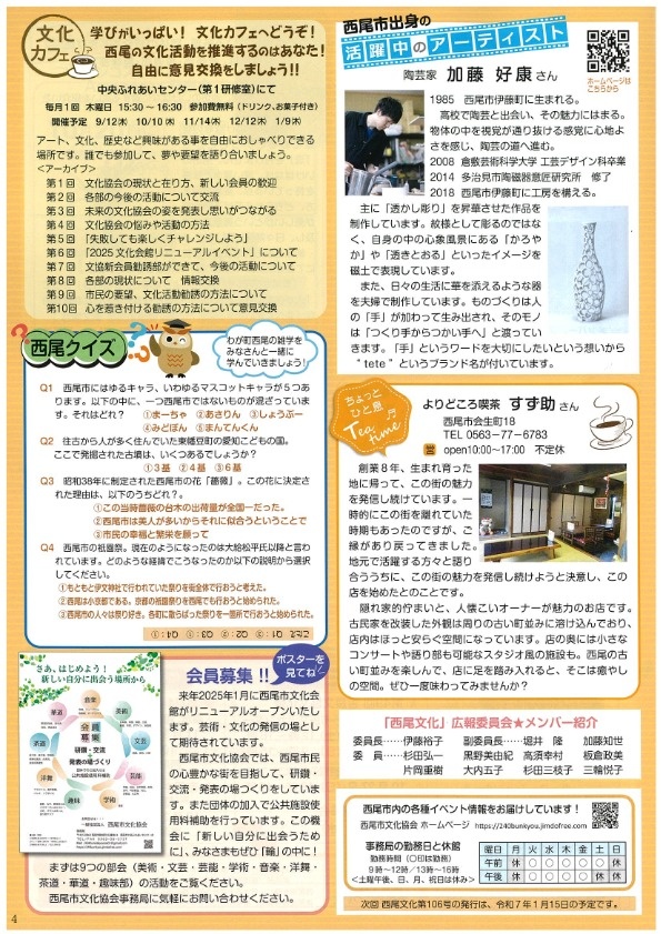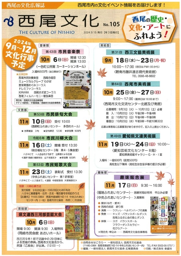 西尾の文化広報誌 「西尾文化」 №105 西尾の歴史・文化・アートにふれよう!
