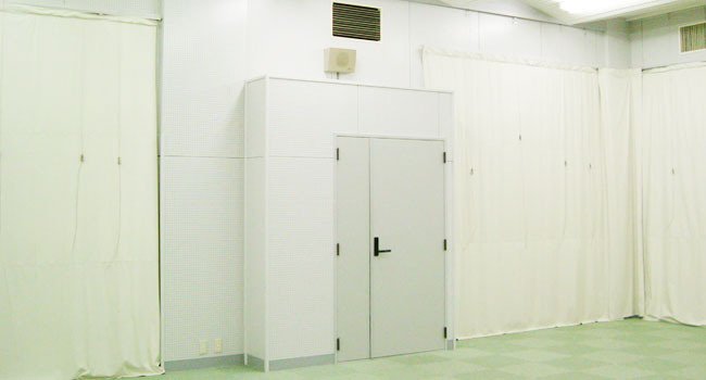スタジオ 音楽や演劇などの練習にご利用いただける、簡易防音使用のスタジオです。 幅×奥行 9.8×9 スタジオは3階にあります。詳しくはフロアマップをご覧ください。 会議室等の荷物の搬入にはエレベータ(間口80cm×奥行110cm)があります。 表内の幅・奥行は目安ですので実際にご確認の上、ご利用ください。 建物の構造上、部屋内には柱や間仕切りパネルがありますのでご承知ください。